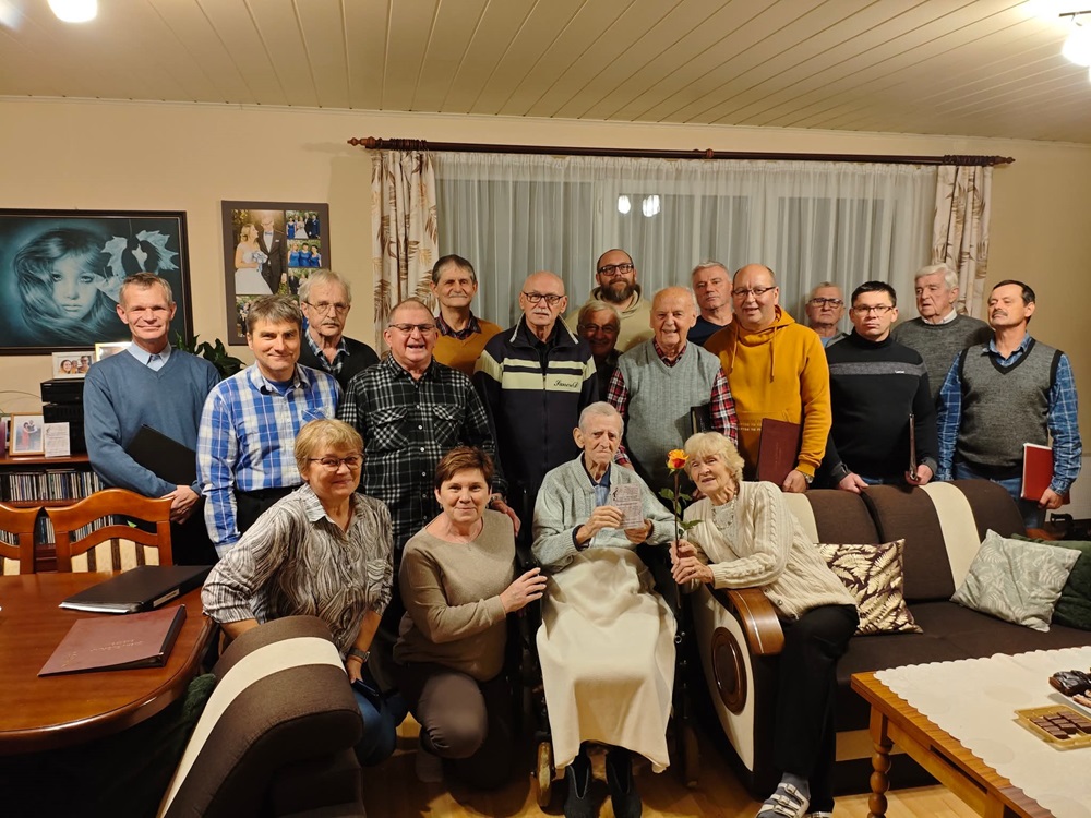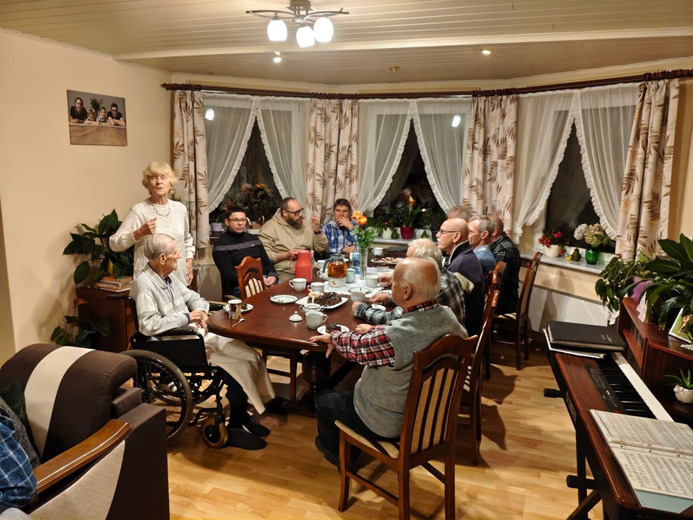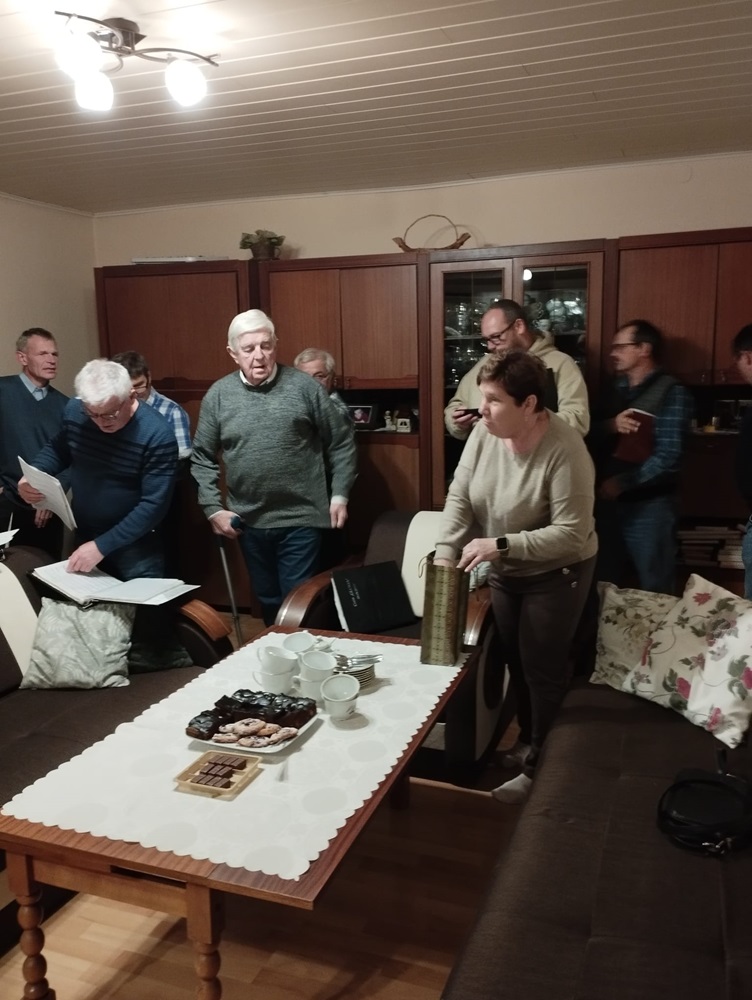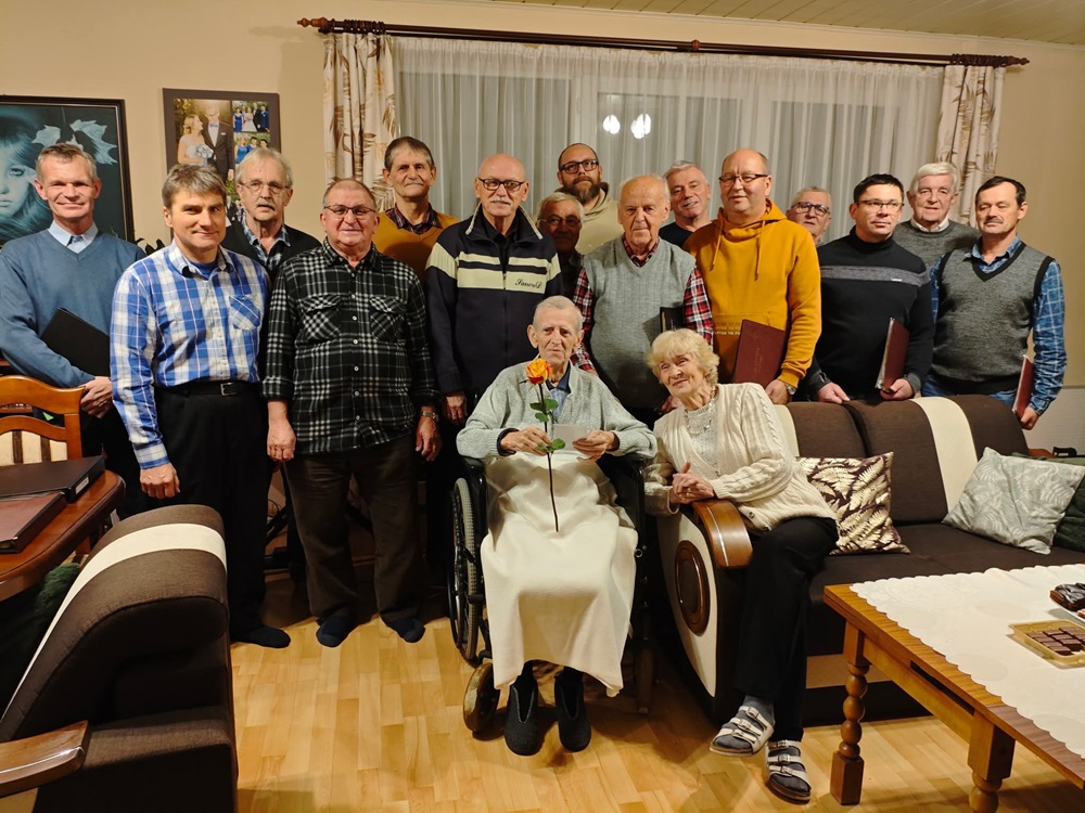 Spotkanie było również okazją do wykonania pamiątkowych zdjęć, dokumentujących to wyjątkowe i wzruszające wydarzenie. Odwiedziny przebiegały w atmosferze życzliwości, wzajemnego szacunku i wdzięczności za lata opieki oraz zaangażowania w działalność Chóru Męskiego. Było to spotkanie pełne ciepła, które na długo pozostanie w naszej pamięci.
