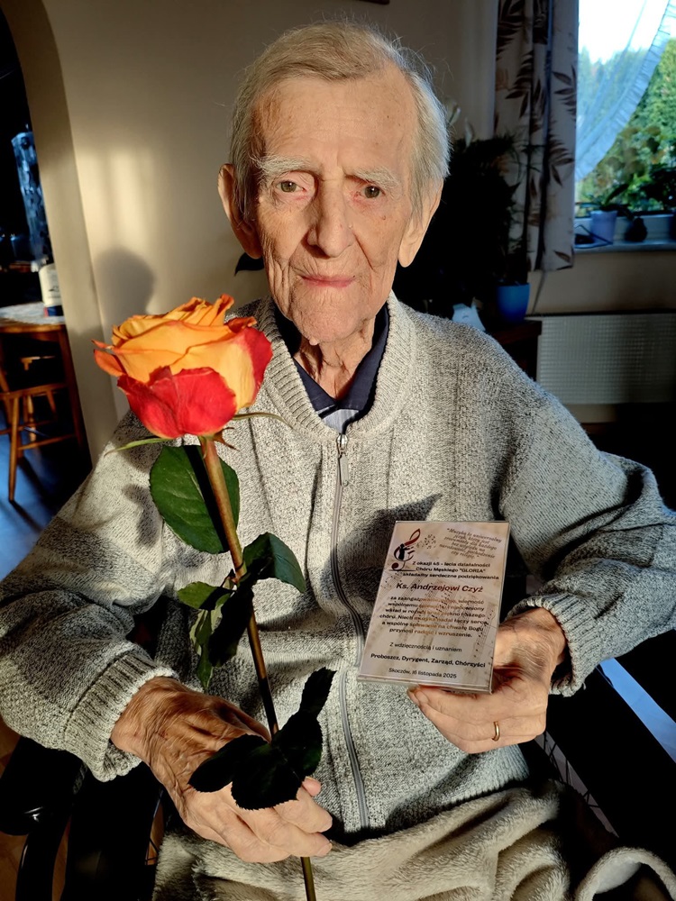 W dniu 20 listopada 2025 roku przedstawiciele Chóru Męskiego „Gloria” złożyli wizytę swojemu byłemu opiekunowi duchowemu, ks. Andrzejowi Czyżowi, który ze względu na stan zdrowia nie mógł uczestniczyć w uroczystościach jubileuszowych zespołu. Spotkanie było wyrazem pamięci, wdzięczności oraz więzi łączących chórzystów z wieloletnim opiekunem chóru. W dniu jubileuszu przekazano ks. Andrzejowi Czyżowi pamiątkowy dyplom jako wyraz uznania oraz wdzięczności za jego posługę i życzliwość okazywaną chórowi na przestrzeni lat, a dopełnieniem tego gestu była róża, symbolizująca szacunek, pamięć i najlepsze życzenia.