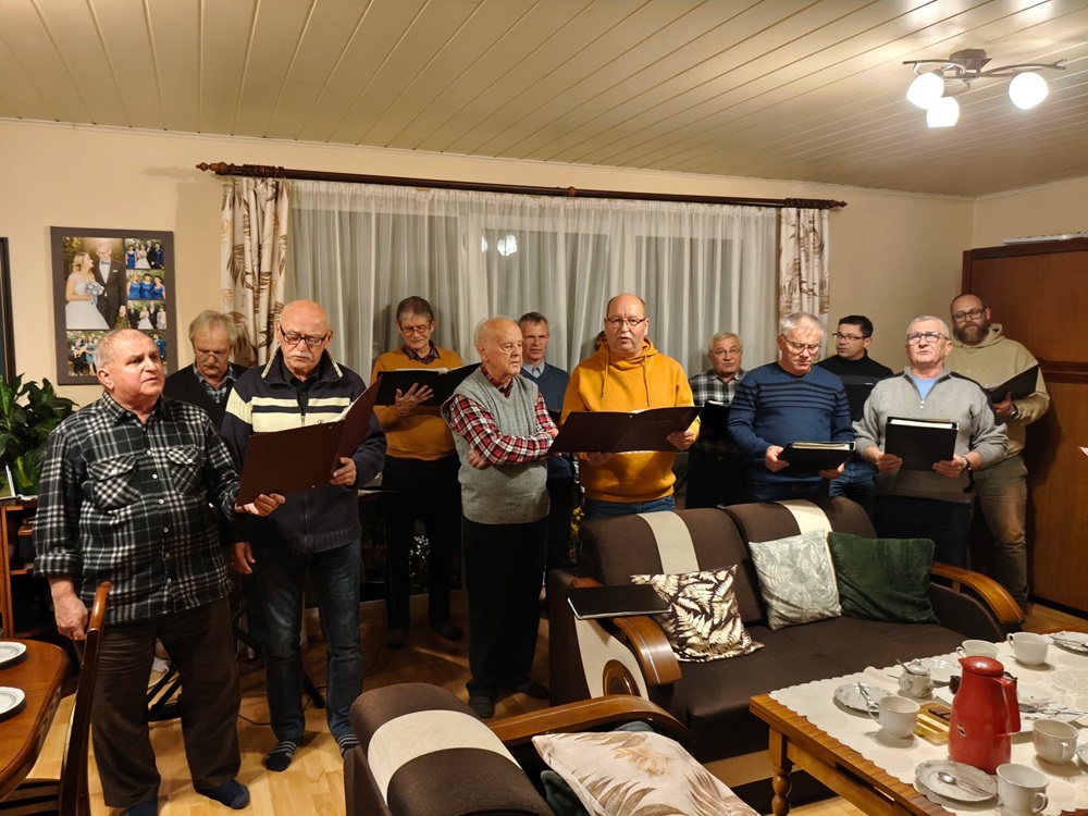 Podczas wizyty chórzyści wykonali trzy pieśni, które stworzyły podniosłą, a jednocześnie serdeczną atmosferę spotkania. Wspólnie spędzony czas wypełniły rozmowy i wspomnienia związane z historią chóru oraz minionymi wydarzeniami artystycznymi.